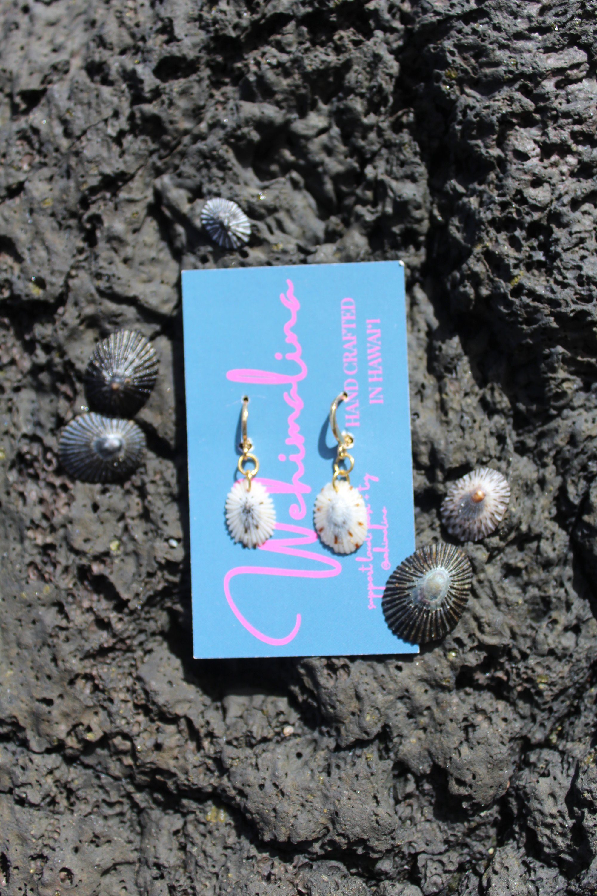 Hand picked ‘Opihi shells from the big island of Hawai’i paired with gold filled hoops.